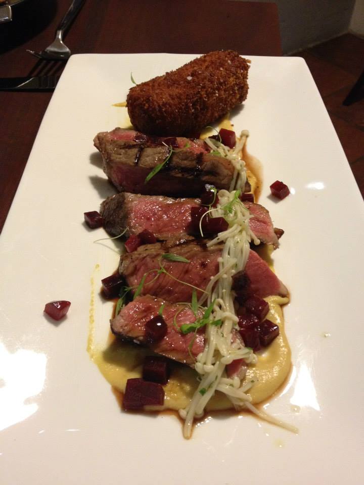 Now across the table, GG was convinced he had won the battle of the mains. He ordered the Sirloin, smoked corn, beetroot, enoki mushroom, croquet ($38). Now it did look amazing, a great arrangement and I’ll be the first to admit that from the bite I was fortunate enough to try that it was tasty. There was a rich smoky flavor to the pureed corn and the steak was so perfectly cooked. I also loved the crunchy croquet. Did he win? Hmmm….. I’m going to say it was a very close and delicious draw 🙂