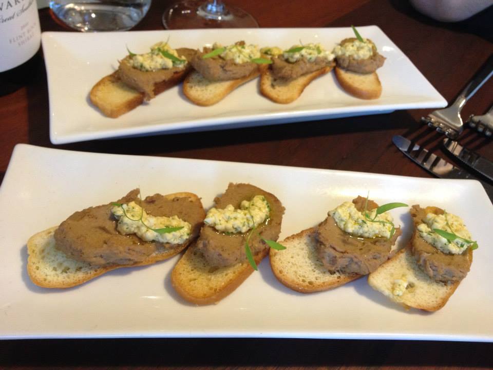 Ahead of our entrees appearing we were offered a very tasty plate of amuse bouches – crispy slices of baguette with duck parfait and an interesting mix of garlic and something like scrambled egg. I’m not always a big parfait fan but the flavour of these little morsels was quite delicate and was well paired with the interesting egg and garlic combination. It definitely ensured our taste buds were kick started into action and eager for the entrees!