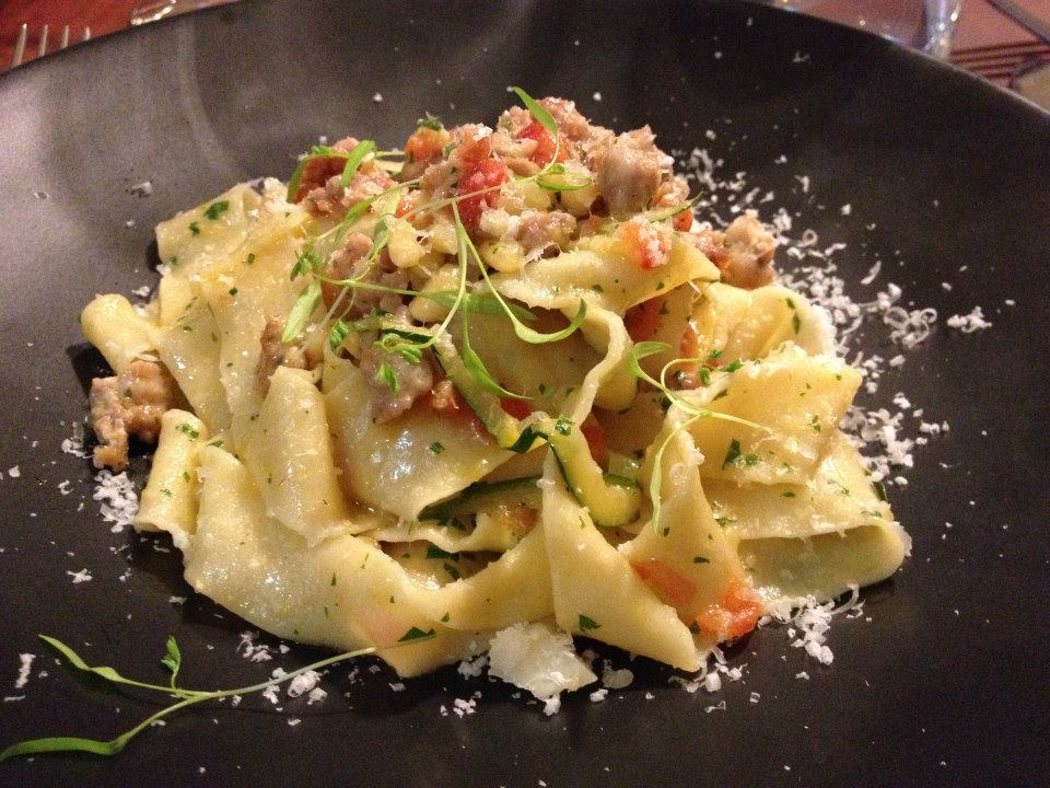 Grappa cured salmon, grapefruit, pomegranate, zucchini, watercress ($18)