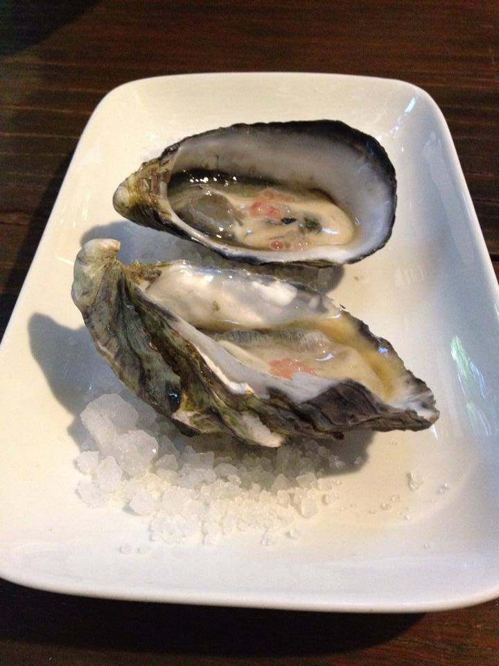 I had pretty much committed the menu to memory and knew that oysters were up first. Half Shell Oysters, Finger Limes. I wouldn’t say I’m a confident oyster eater. Any attempts are still fairly tentative and conditions have to be fairly perfect for me to sing their praises. I took the smaller of the pair and used my fork to carefully loosen the oyster before I elegantly flip topped my head to eat it. As it was, I put my fork in my mouth after fiddling with the shell and was overwhelmed by the strong flavour. I knew I couldn’t eat it so I gave mine to GG. He ate it and he noted he would have preferred if they were served a lot colder. So he didn’t eat the second.
