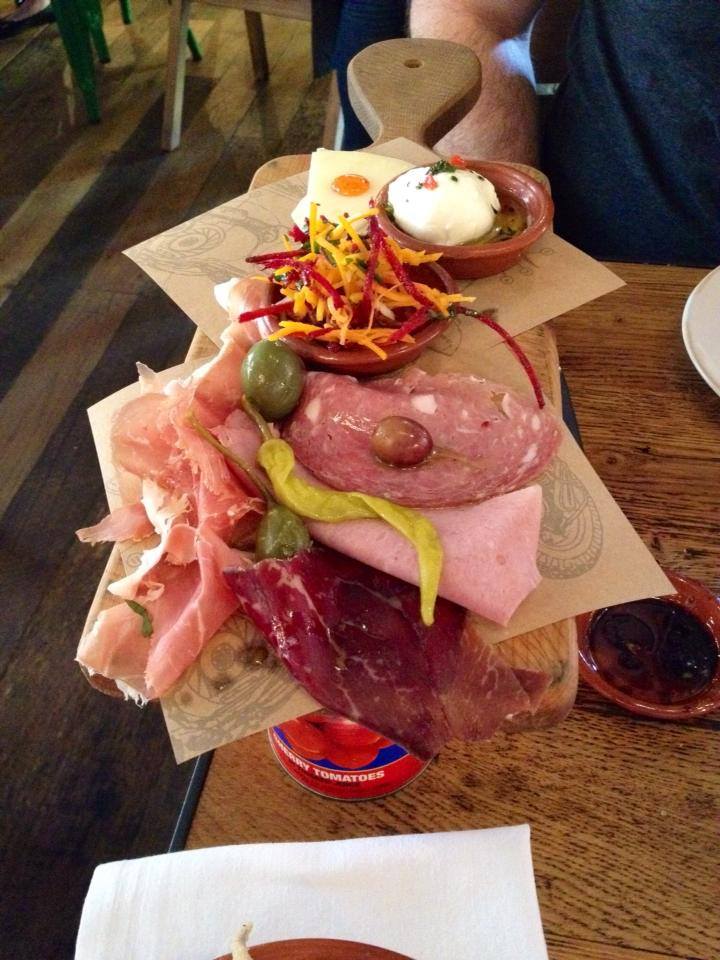 I’ve been to Jamie’s Italian three times now. I was fairly smitten after my first visit. I had gotten to try one of his renowned planks and loved it, then enjoyed the rabbit pasta dish I had chosen and thought the chocolate brownie for dessert was divine. And service had been wonderful. The second visit wasn’t quite as spot on, service was a little slower, but I still enjoyed the food, particularly the sky high tower of lemon meringue pie I had chosen for sweets 🙂 There’s something magical about that much meringue when it’s all silky, melt in your mouth loveliness. I also had the Tagliatelle Bolognese (Ragù of beef, pork, herbs, Chianti & Parmesan with crunchy, herby breadcrumbs) on this trip and thought it was pretty tasty too. So the other weekend GG and I headed back for round three. We were seated in a different spot close to all the antipasto action, which was a nice change of scene.