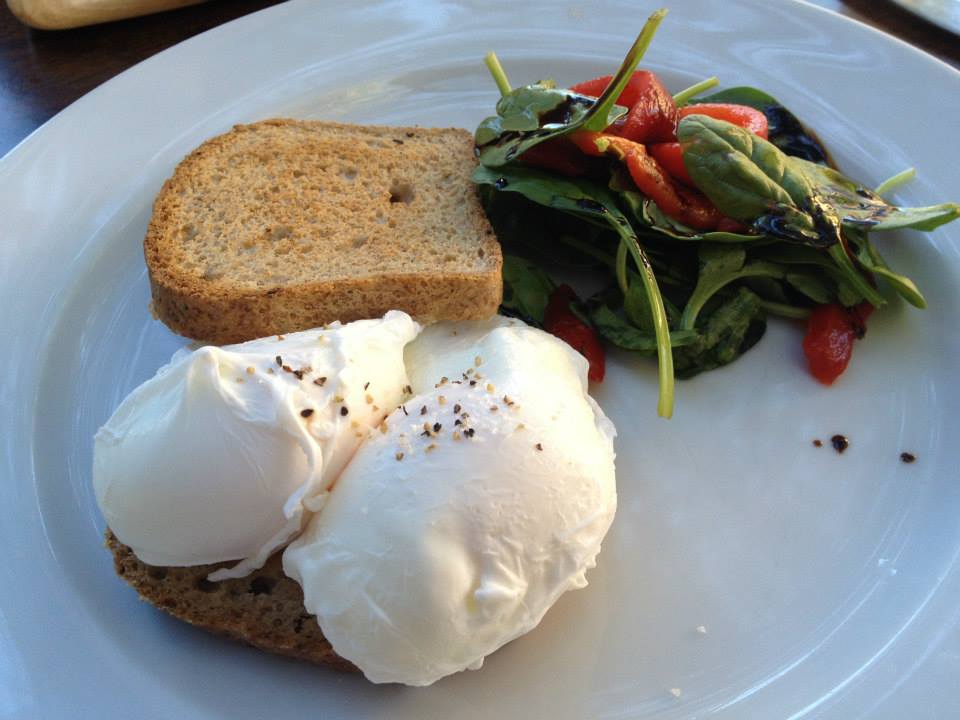 I was more impressed with my eggs. They were just perfectly poached. Really enjoyed them, but would have preferred a different bread. The sour dough was a fairly dense affair, not my favourite pairing with the poached eggs. But great eggs. The little salad on the side was a nice garnish, with some added zing from the balsamic vinegar dressing.