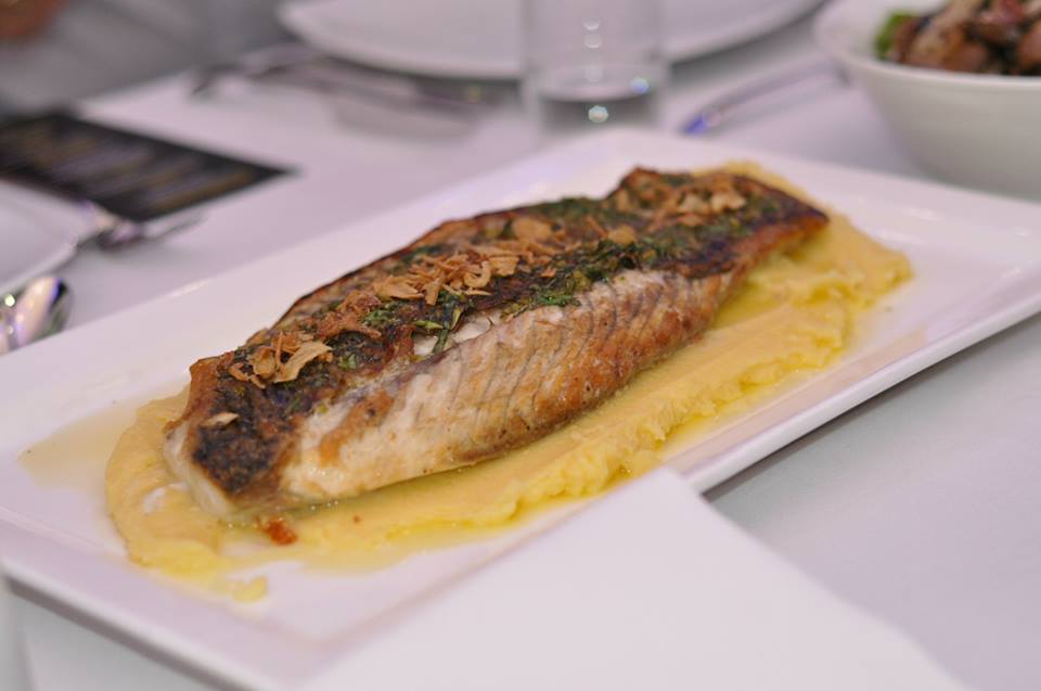 Up next was mains and it was a shared affair from the Trustee Bar and Bistro. Large plates of Shredded Confit Lamb on Rosemary, Roast Garlic Mash, and Cone Bay Barramundi on White Truffle Potato Puree with Warm Salad of Wild Mushroom, Radicchio, Snow Peas and Italian Coleslaw. And featuring with this course was Vasse Felix Chardonnay. Sharing the mains was a fun way to get to know the folks who were seated around you as you passed around the generous plates. The slow cooked lamb was divine, it was well cooked barra and who doesn’t love coleslaw? Very filling too!