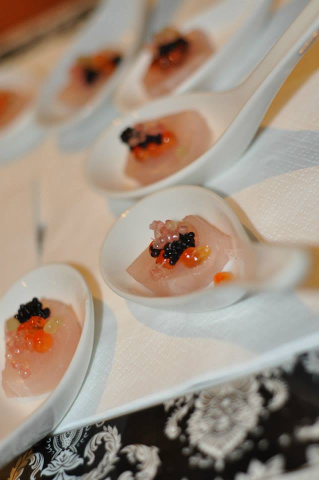 Kingfish sashimi with mixed caviar including citrus!
