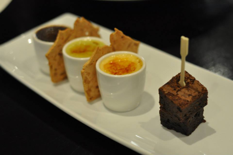 Trio of crème brûlée – let us surprise you! served with warm brownie & tulle biscuit ($14)