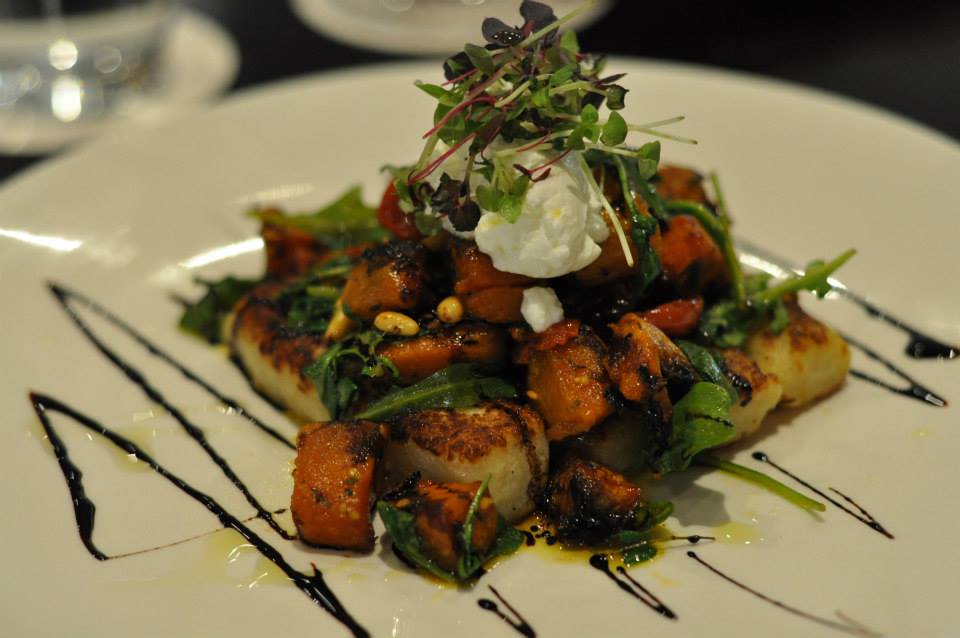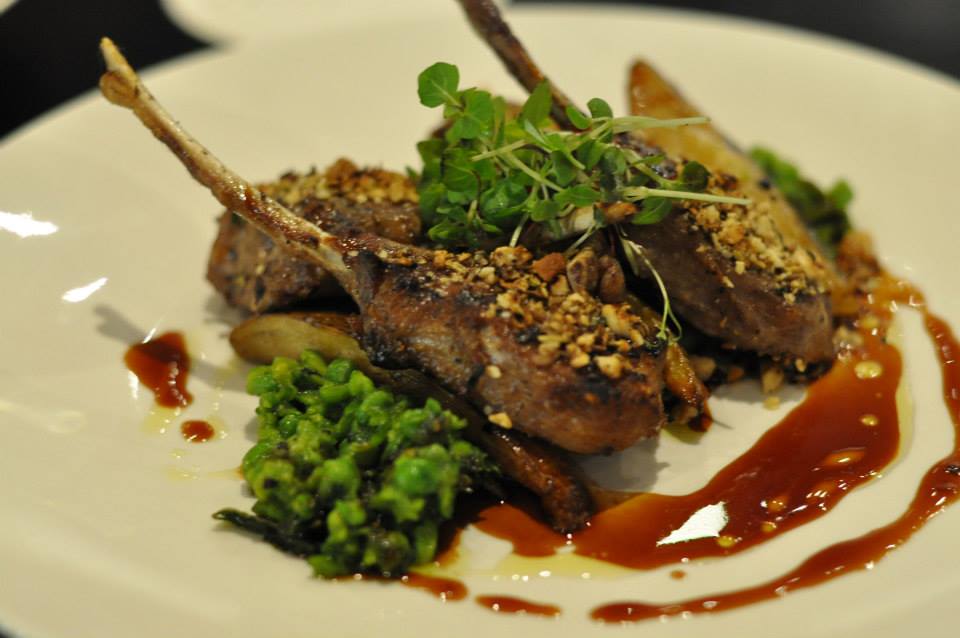 Onto mains – talk about tough decisions! GG locked in the South west fiery fillet 220gm – Chef Chad Miskiewicz’s secret blend of fiery spices on 220gm beef fillet, Adelphi chips. All steaks served with your choice of mushroom, béarnaise, red wine or pepper jus ($43). Julia chose the Potato gnocchi cigars – roasted pumpkin, pinenuts, rocket leaves, goats cheese, cherry tomatoes ($28). I ummed and ahhed until the last minute before locking in the Dukkha crusted lamb cutlets – kipflers, minted peas, red wine jus ($46). With each main dish you were able to help yourself to bread rolls and butter, along with a range of freshly made salads from the salad bar.