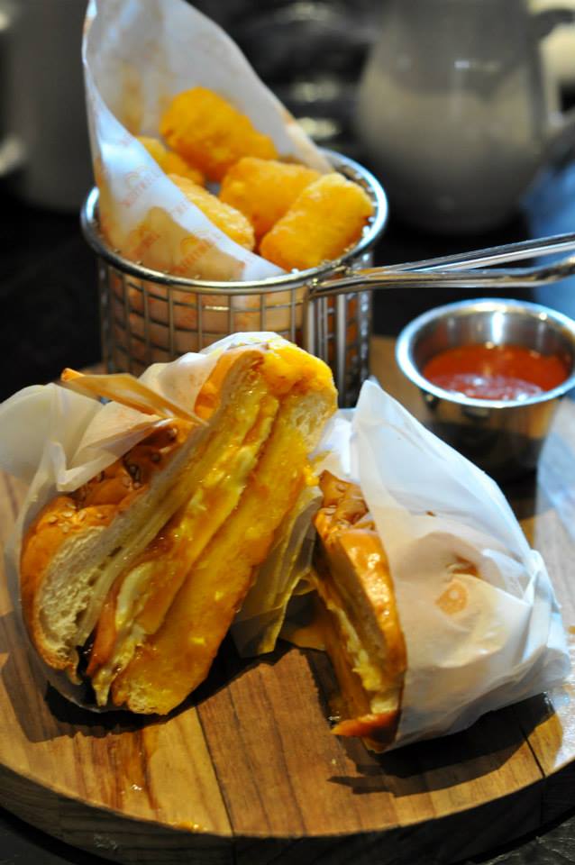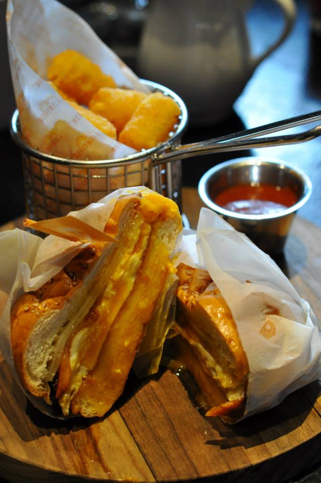 I was so excited to try the two dishes that had half my name on them 🙂 After a speedy foodie photo shoot it was time to get stuck in. I first enjoyed a tater tot and let’s face it, they are always a big hit, especially with the tasty ketchup, but it was then time for my half of the egg roll. And will you just look at it!! People use the phrase ‘yolk porn’ and this roll really had yolk porn going on. Where it had been sliced in half it was like a golden river dramatically running out of that beautiful brioche bun. And then you take that first bite and it’s love. Love at first bite. I think if I hadn’t had anything else I might have been able to polish off the whole thing, but not today. Today was all about the wonderful challenge of trying to sample as many dishes as possible.