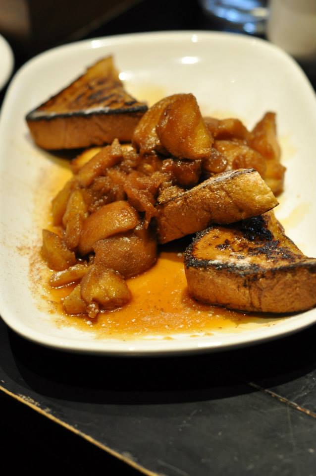 A variety of different dishes were ordered and because the Merrywell team seemed entirely focused on ensuring that we were filled to the absolute brim by the time we left, they brought out a few dishes for us to try while they cooked up our mains. So three plates of Apple Cinnamon French Toast appeared, which smelt seriously amazing, and then they gave each of us a mini solo serve of The Merrywell’s Croque Madame – A Sunny Side Up Egg, Toasted Ham and Cheese Pops. I started with the savoury and eagerly picked up the soldier of toasted ham and cheese sandwich that had been speared onto a wooden stick. A sandwich on a stick, how entirely perfect! So you take your stick and dunk away into the yokey goodness of the sunny side up egg. I think the sound everyone made when they took their first bite was fairly consistent around the table. It was complete and utter joy at this delicious morsel. There was the soft, yet crispy bread, the melted cheese and flavoursome ham and then the yolk, which acted as a wonderfully indulgent sauce. Just wonderful and really added some fun, modern flair to the classic croque madame creation.