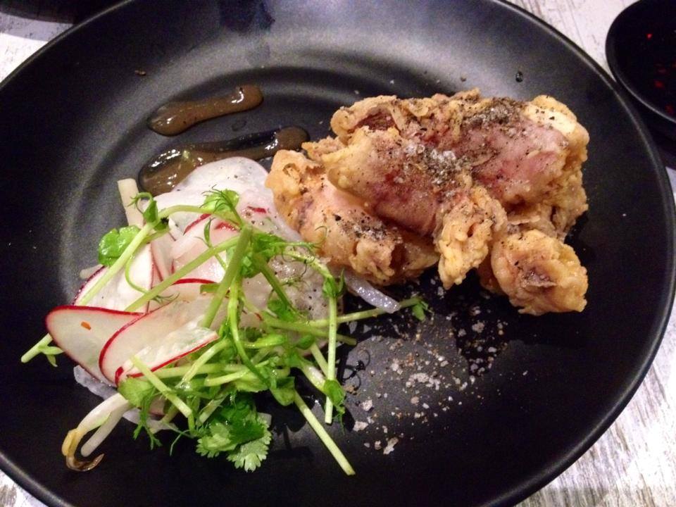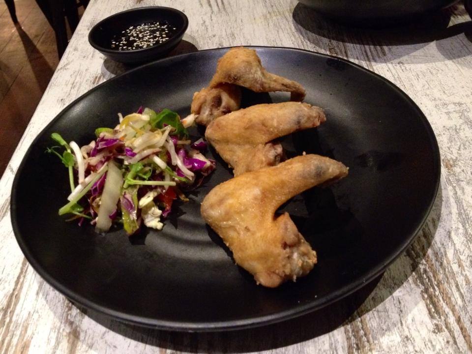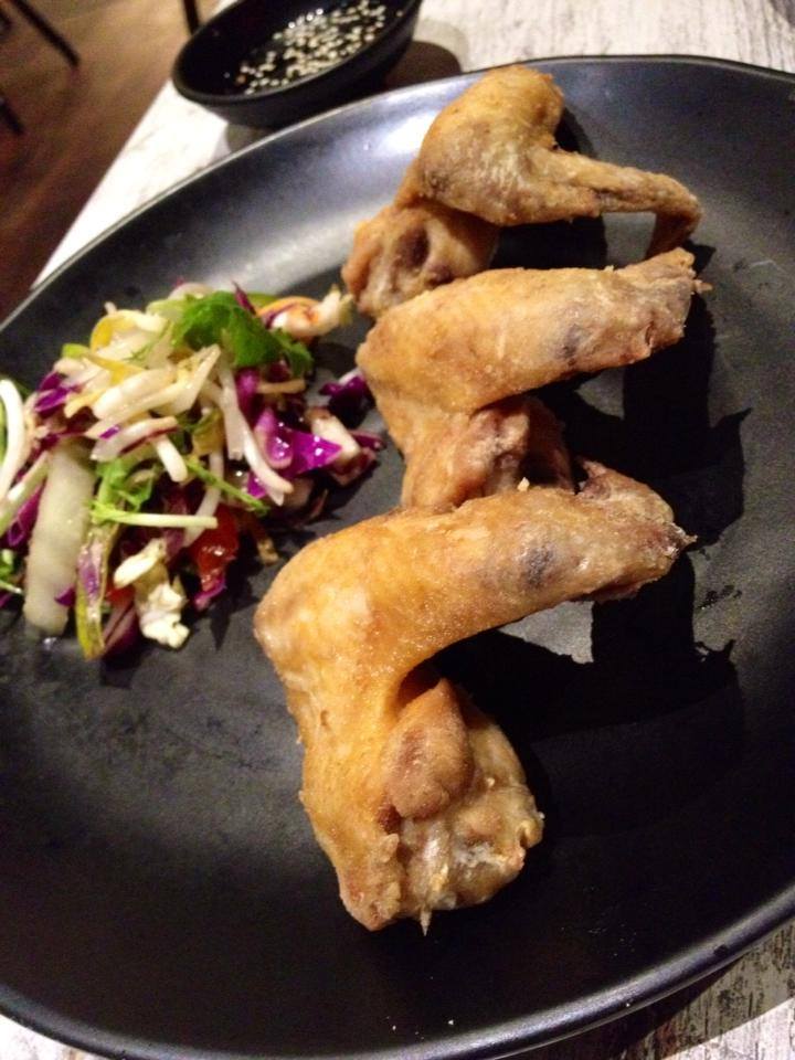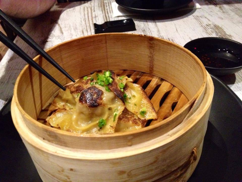 Schezwan and salt squid w/ house rice wine vinaigrette $11 Honey sesame chicken wings $11Everything arrives as it’s prepared so it’s totally fresh and red hot! First up were the sticky pork dumplings. Pan fried and with an accompanying vinaigrette they were a very tasty morsel and thankfully I was able to pluck them from their steam basket securely into my chopsticks. Just putting it out there, I am fairly sub-par with chopsticks, which is often a big struggle when I am hungry and I so desperately just want to get the food from the plate to my mouth, without too much of a scene.