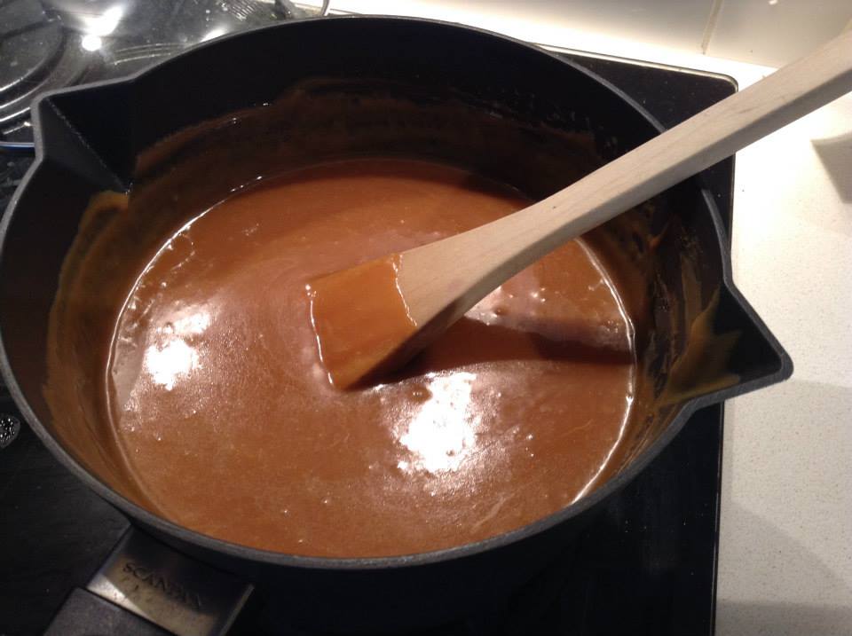 - Caramel time! Unwrap all those Columbines and pop into saucepan. Add a few tablespoons of water and the other ¼ cup of condensed milk. Over a low heat, warm the caramels until they have melted. Keep stirring until nice and smooth.