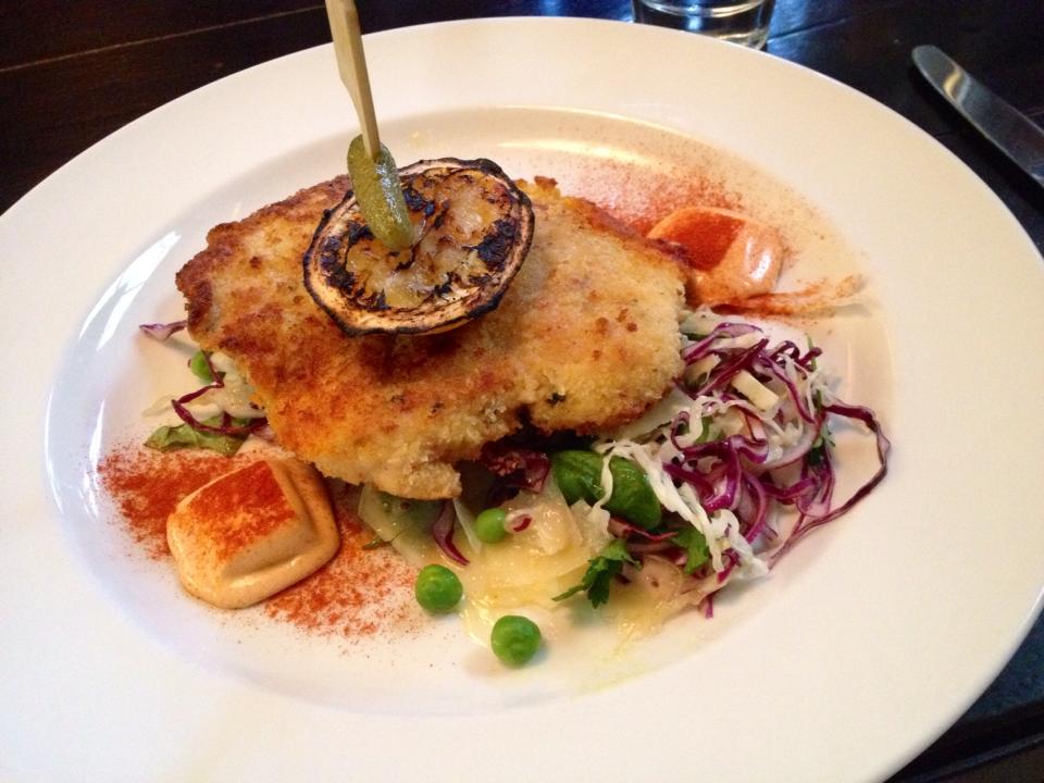 Onwards to the main ‘mains’ event and I thought my chicken cottaletta looked delicious. Was it a very fancy chicken schnitzel? You bet it was and this schnitty fan could not have been happier. It was a generous slab of crumbed chook, placed on top of a bed of crunchy slaw. Slaw is just great and I quite enjoyed how the dressing was light and zingy, though there was a wonderful creamy element from the aioli, which had a punchy spice from a generous sprinkle of paprika. From the dainty cornichon that had been speared on top to all the slaw, it was two for two on the ordering front as I powered though the tender chicken.