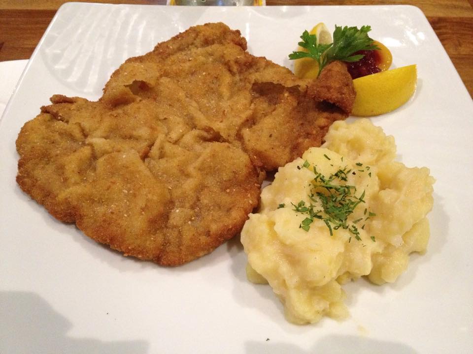 I was similarly impressed with my slab of schnitty, served simply with some potato salad, a wedge of lemon and a small dollop of apricot and cranberry sauce. Now the waiter had also advised me to order some knuckle sauce for my schnitty and who was I to argue. The knuckle sauce was indeed delicious, a flavourful gravy. And the schnitzel was thin and tender and had been lovingly crumbed and fried to a crispy perfection. I had wondered if I would actually be able to finish it but surprisingly I did! I couldn’t have left any behind. Leave no schnitty behind!