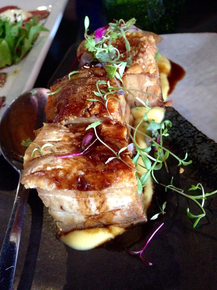 We got some pork on our fork next with Free range pork belly, apple puree, sticky pedro ximinez. Pork belly is a real crowd pleaser and everyone eagerly got stuck into their allocated chunky cube with crispy crackle top. Delicious and the sweet pedro glaze worked a treat. Accompanying this was a Jamon Selection – serrano, iberico, sourdough. I really enjoy cured meats and it was interesting getting to compare and contrast serrano against iberico.