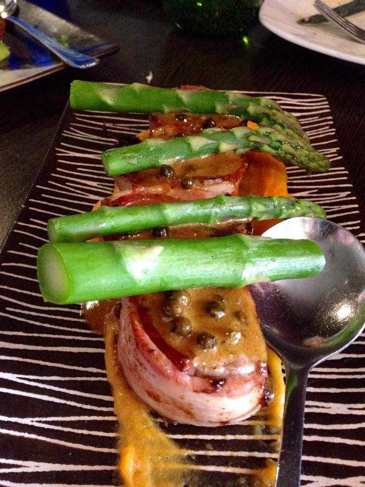 And the good times kept coming with four perfect little Amelia Park Lamb Truffles, pea and mint puree, which added a real splash of green to the plate and the crispy lamb was deliciously tender and flavoursome. Another meat dish was the Petit Mignons, beef fillet wrapped in bacon, sweet potato, a dainty beef medallion wrapped in bacon with a creamy pepper sauce on top. It was really tasty and a manageable size which was pleasing this far into our Rustico dining adventure.