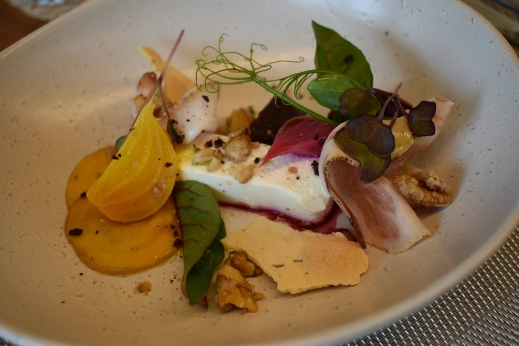 - Entrée: Goats Chevre Parfait, Textures of Beets, Candied Walnut, Guanciale