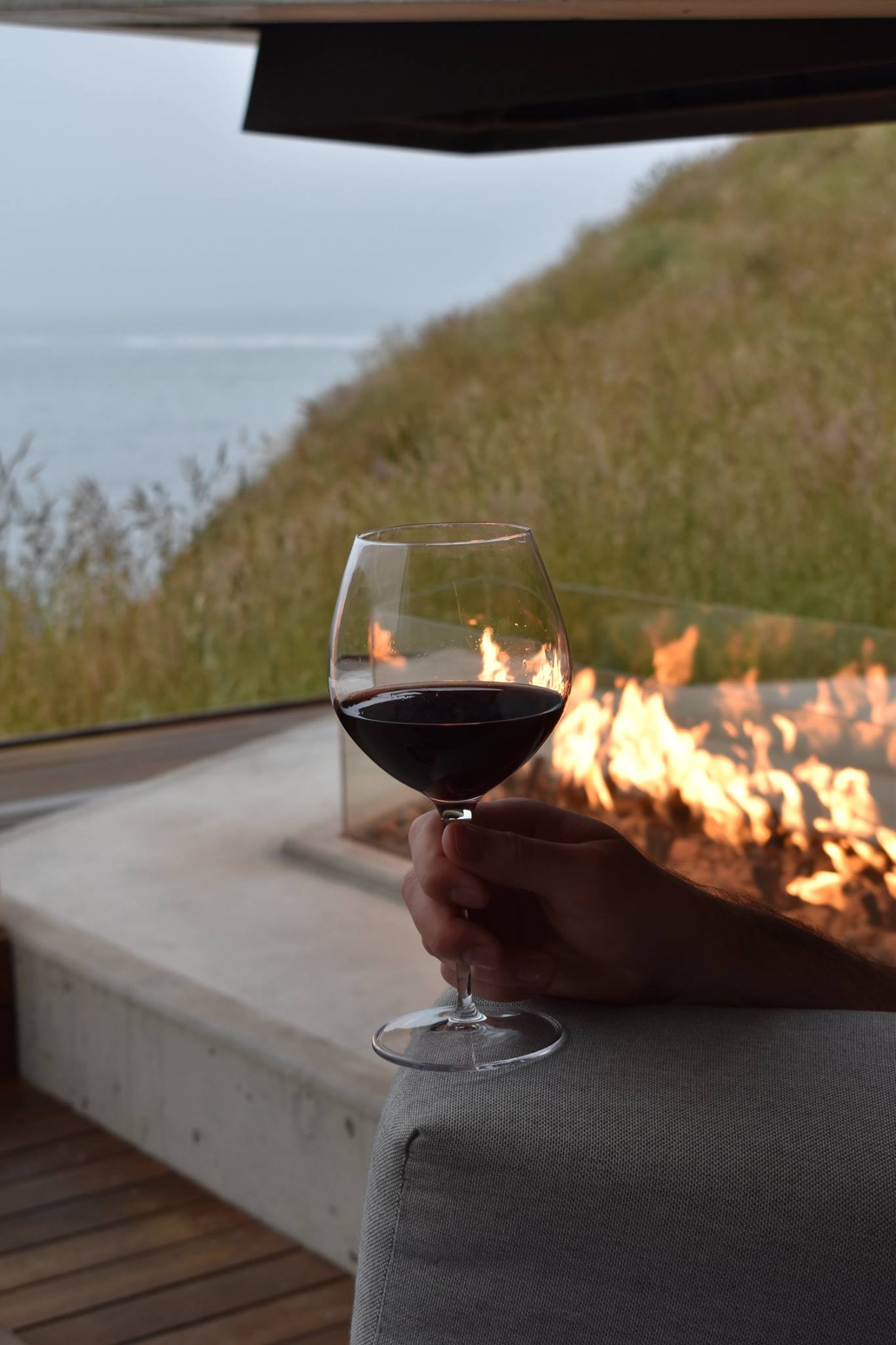 The temperature was such that we could keep the fire place inside on and be comfortable, particularly on our last night when it was slightly misty we sat outside and enjoyed a class of red near the fireplace. Warm and beautiful.