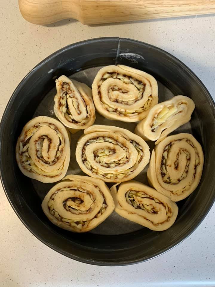 Thankfully I had all the ingredients I needed, so got straight to it. It was a good recipe, really easy to follow. I think for me it was more the shape of the dough when I rolled it out that I should have been more conscious of. More like a rectangle I suppose, so that when you roll it up, it makes for more even scrolls all the way along. Mine ended up more like a wonky oval, so when I rolled it up, the end bits were a little small and didn’t have even filling. But hey you learn these things and giving something a go is the best way to do that.