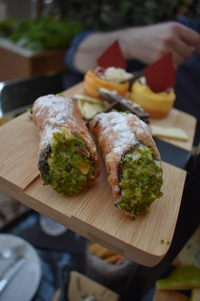 Sweet Crust Cannoli filled with Ricotta Cheese, Vanilla Cream & Pistachio Crumble