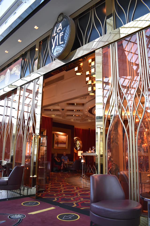 So we were headed to La Vie, Crown’s indulgently plush champagne lounge. Decor feels a little bit Parisian, complete with chandeliers, leather sofas, pretty, ornate lamps and rich tones of reds and gold. It draws you in, takes you away and really is the ideal setting for a glass of champagne.